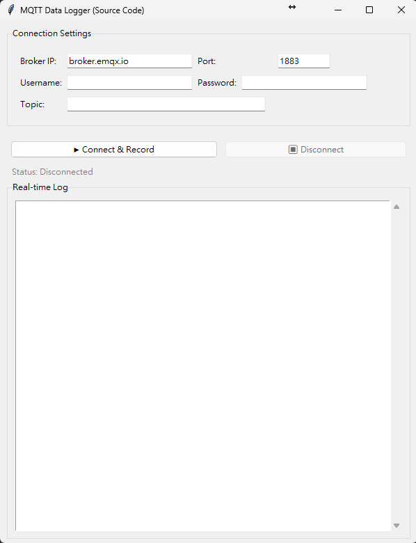 Timestamp,Topic,Payload) is saved automatically. - Non-Blocking UI: Multi-threaded architecture ensures the interface never freezes.